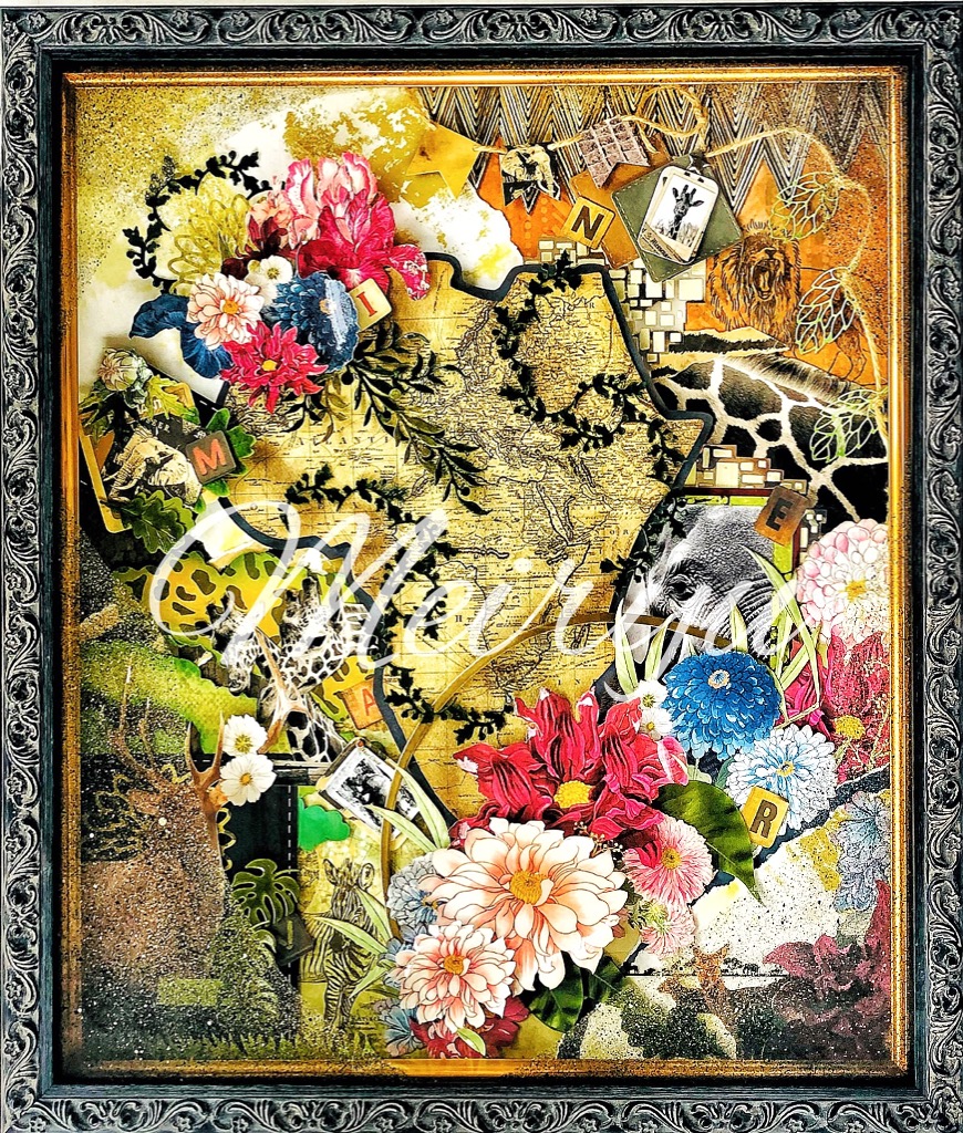 オリジナルの構図を立体的に貼り付ける事で、アートスクラップブッキングが完成します。